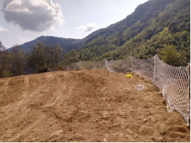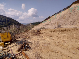 礦山將原1號(hào)采場(chǎng)+460m凹陷采坑一邊作為排土場(chǎng),該凹陷采坑邊坡均為花崗巖體,較為穩(wěn)固,排土場(chǎng)的選址滿(mǎn)足需求。實(shí)際礦山在凹陷坑中間建一座毛石漿砌擋墻(擋墻長(zhǎng)40m,高約3m,壩頂寬約1.5m,內(nèi)外坡比約為1∶0.3),排土場(chǎng)有效堆排面積約3800m2,堆置高度約5m,排土場(chǎng)有效庫(kù)容量為1.9萬(wàn)m³,目前現(xiàn)有排土場(chǎng)內(nèi)已堆排的廢石土量約0.5萬(wàn)m³。 |