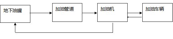 加油工藝:加油作業(yè)時,采用潛油泵提供的動力,油品通過加油管道至加油機,進入受油容器。同時,加汽油作業(yè)時,有油氣回收回收系統(tǒng),汽油蒸汽通過油氣回收管道回至汽油罐。具體流程見下圖: